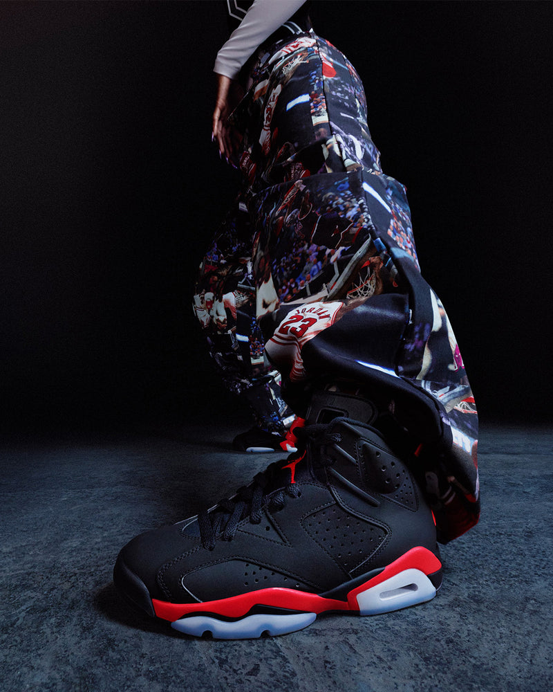 La Jordan 6 Rétro Infrarouge fait son grand retour, un modèle intemporel aux couleurs noir et rouge incontournables.